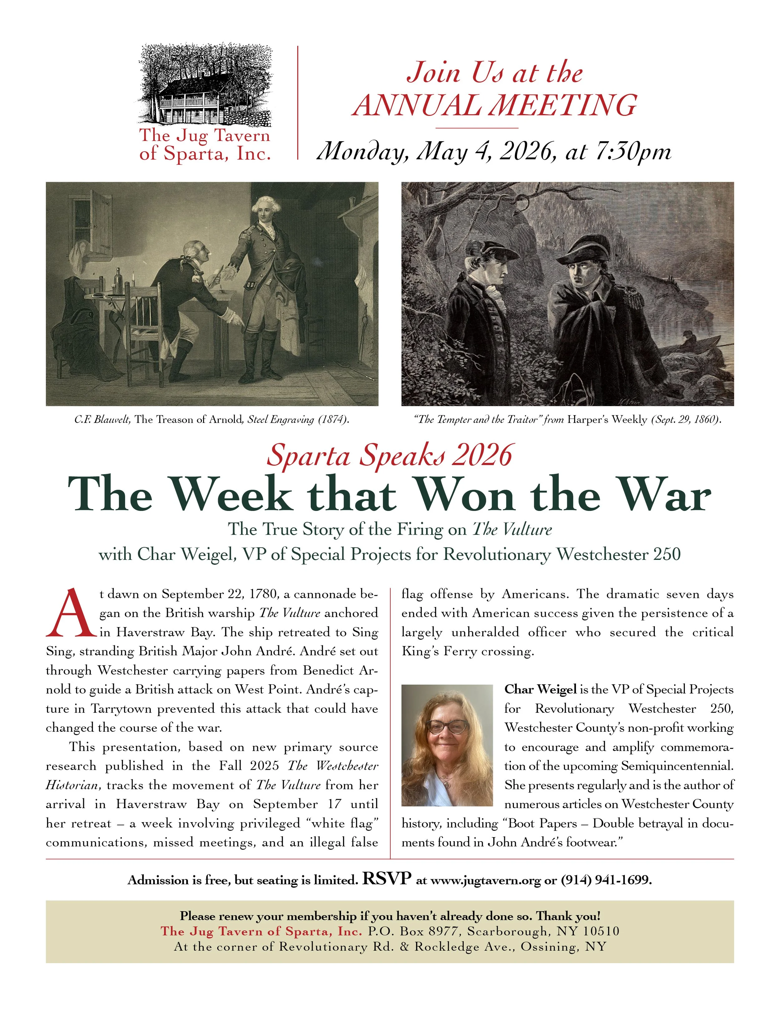 Join us for our Annual Meeting on Monday, May 4 which includes our first Sparta Speaks of the season!